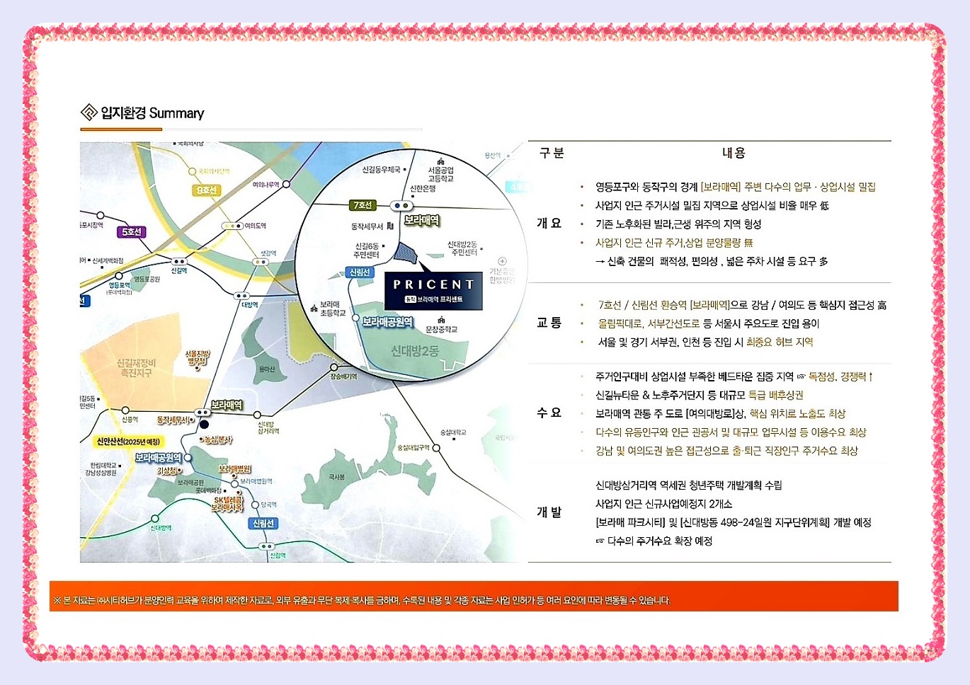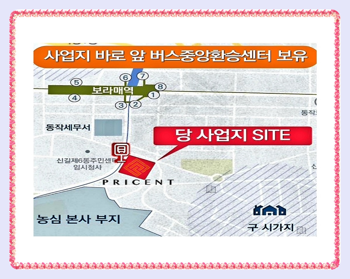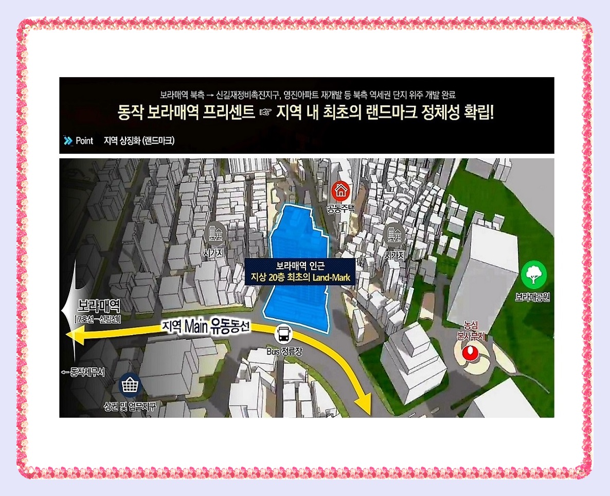 신대방의 최 중심, 신대방이 아껴둔 마지막 그 자리, 끊임없이 흐르는 유동인구와 지역수요, 반드시 거쳐야 하는 자리에 조성되는 동작 보라매역 프리센트 상가를 분양합니다.