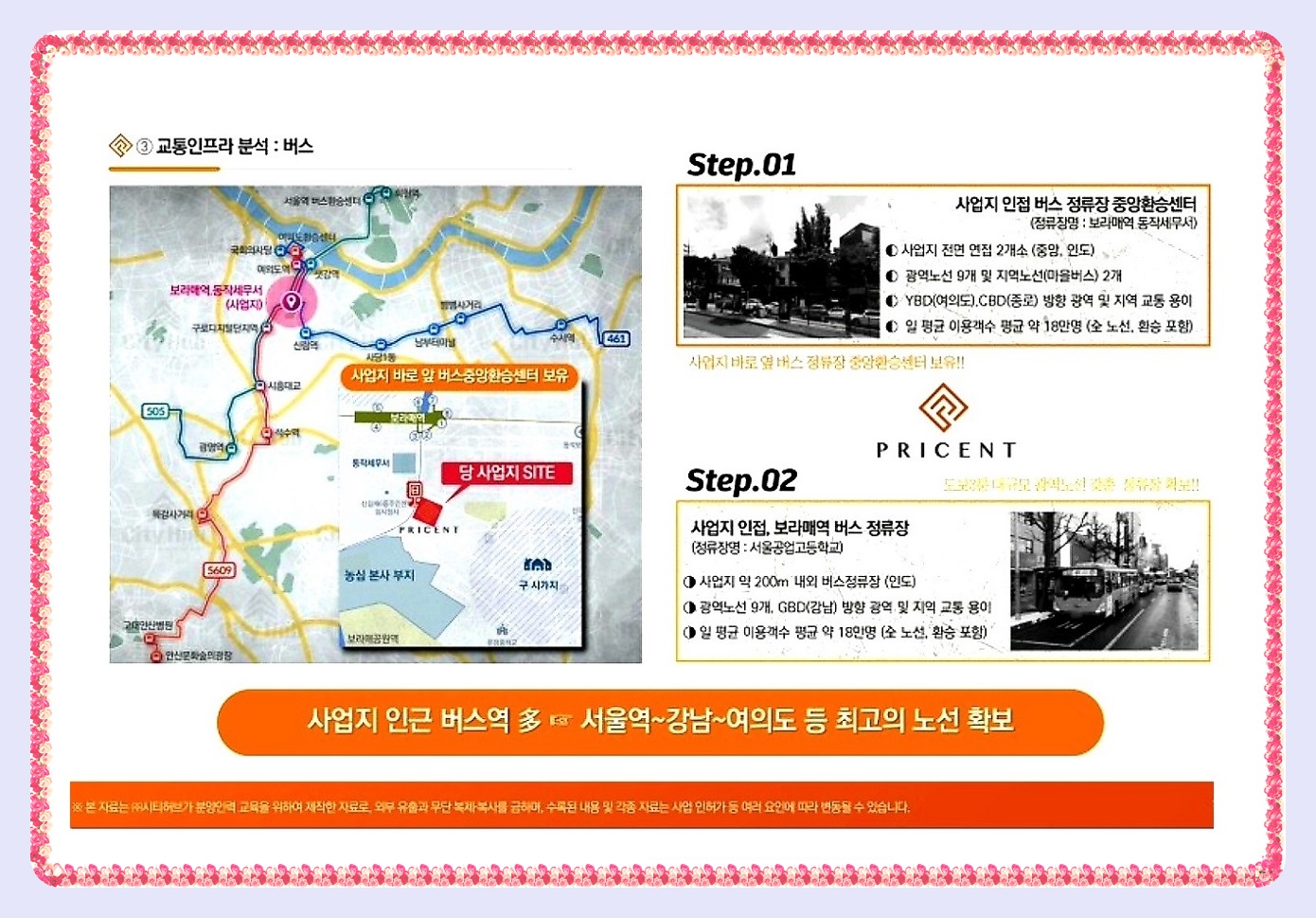 사업지 앞 버스중앙차로 11개 버스노선 운영 !