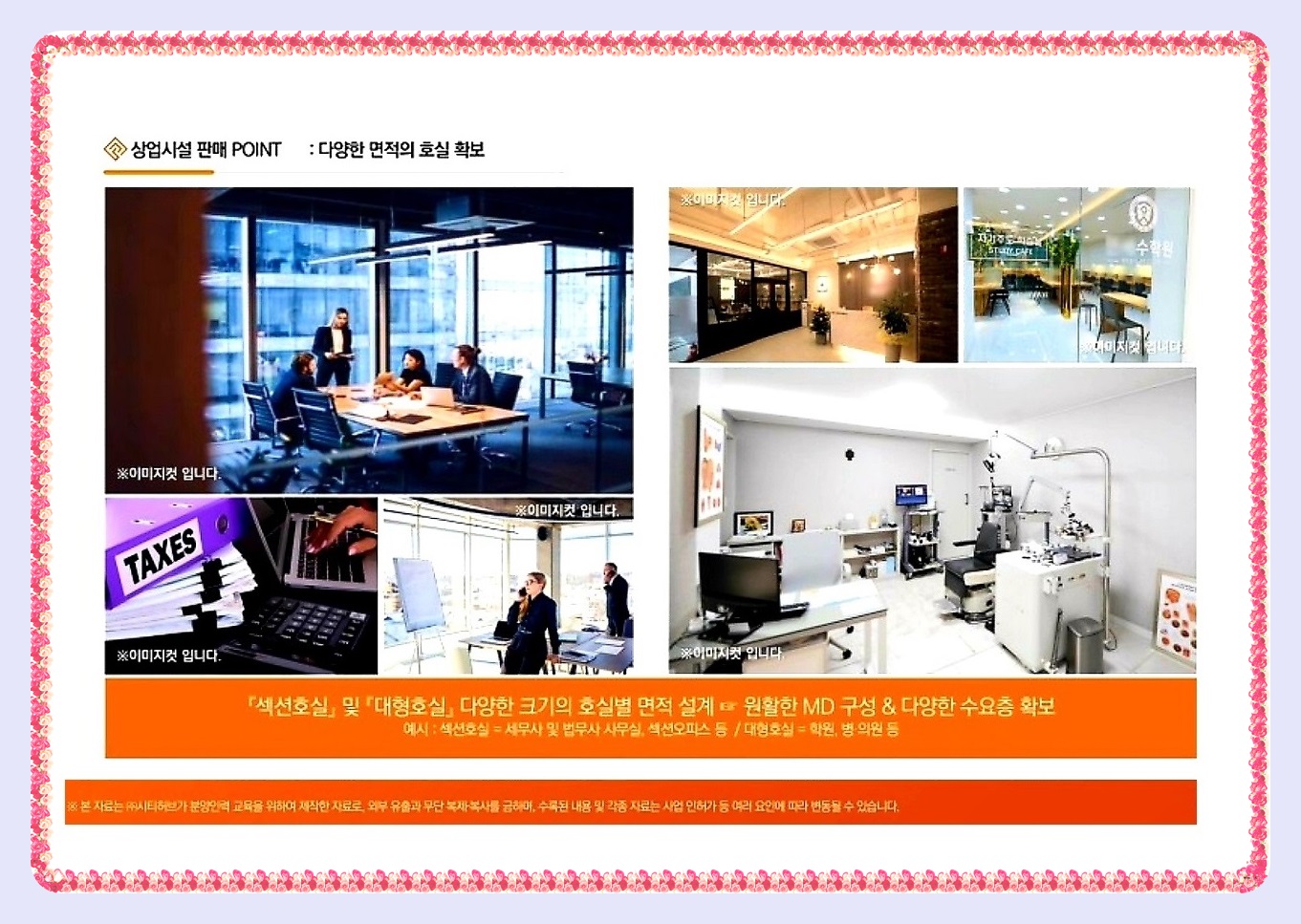 미용실, 네일샵, 마사지샵, 에스테틱, 피부관리실, 서점, 동물병원, 애완용품 전문점, 한식⚬중식⚬일식 전문점, 피자, 프랜차이즈 음식점, 스파게티전문점, 씨푸드뷔페, 내과, 치과, 안과, 소아과, 이비인후과, 피부과, 비뇨기과, 성형외과, 한의원