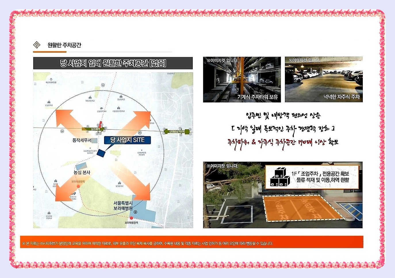 동작 보라매역 프리센트는 보라매역 인근 복합건물 중 유일무이한 주차타워 & 자주식 191대 이상 대규모 주차공간을 확보할 계획입니다.