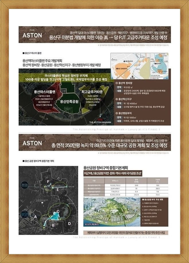 용산역 일대 마스터플랜(용산역 정비창⚬용산공원⚬용산혁신지구⚬용산병원부지 등 지속적인 개발진행 중), 용산공원 정비구역 종합기본계획(미군기지 이전에 따른 용산공원 일대 재개발⚬재정비사업 진헹 중), 용산국제업무지구, 한남근린공원 부지개발, 한남동 이태원1동 보광동 등 국제교류교육권역으로서 2040 중장기 종합발전계획수립, 약 1.3만세대 입주예정인 한남뉴타운 재개발사업으로 도시재정비 간접효과 상당(사실상 3.5구역) 등 개발호재가 많습니다,