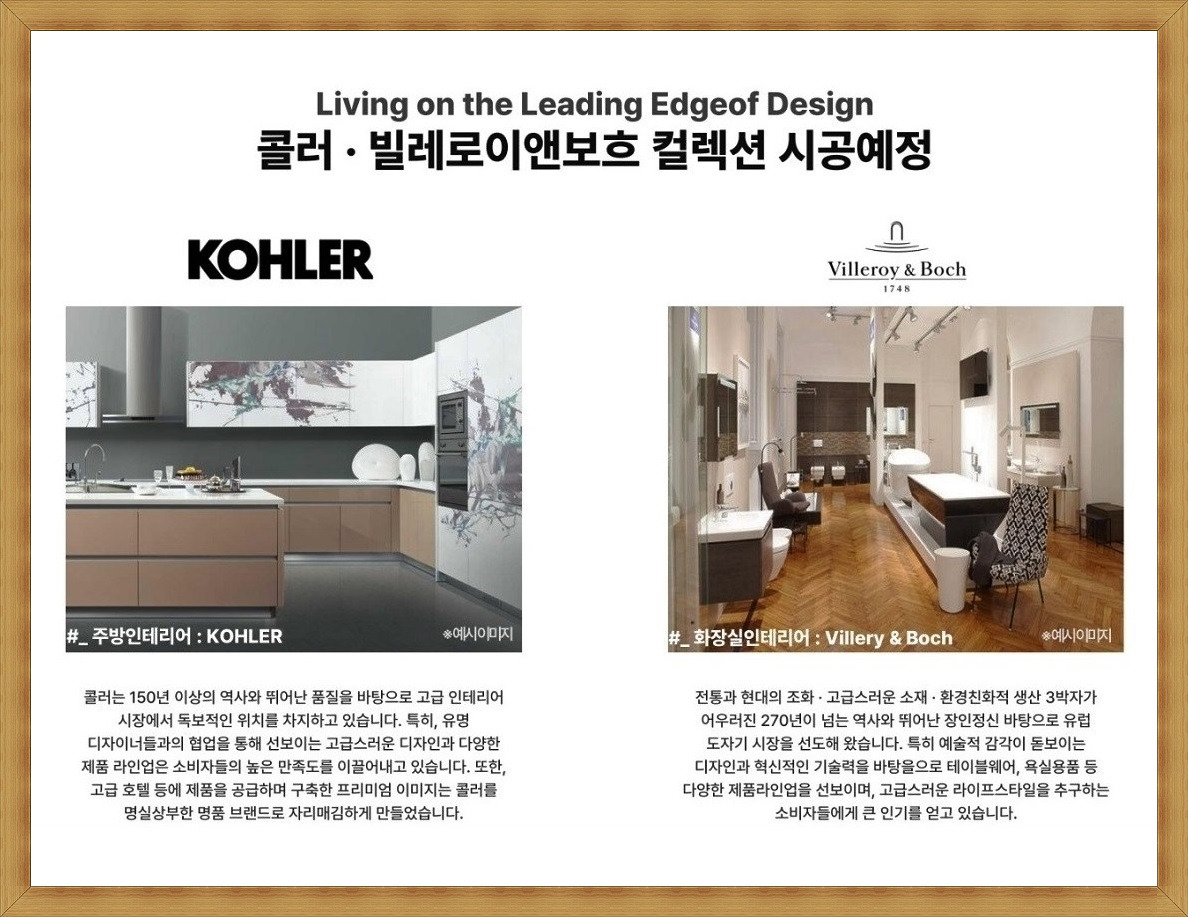 부촌의 명성에 어울리는 150년 이상의 역사를 가진 세계적인 명성의 주방 디자인 업체 콜러(KOHLER)와 유럽 왕실이 선택한 270년 전통의 명품 브랜드 빌레로이앤보흐(Villeroy & Boch)가 최고급 주방 디자인⚬인테리어 마감 및 SMART HOME IOT, 섬세한 배려로 일상을 보다 편리하게 주거편의 시스템 Convenient System, 마음이 안심되는 철저한 보안∘안전 시스템 Security-Safe System, 효율적인 설계로 에너비 절약까지 Energy Saving System, 친환경 공간으로 주거환경을 더 쾌적하게 Healthy System, 친환경 웰빙 주거시스템 Well-bing System 등 앞선 생활로 안내하고 삶의 가치를 올려주는 최첨단 시스템을 적용할 예정입니다.