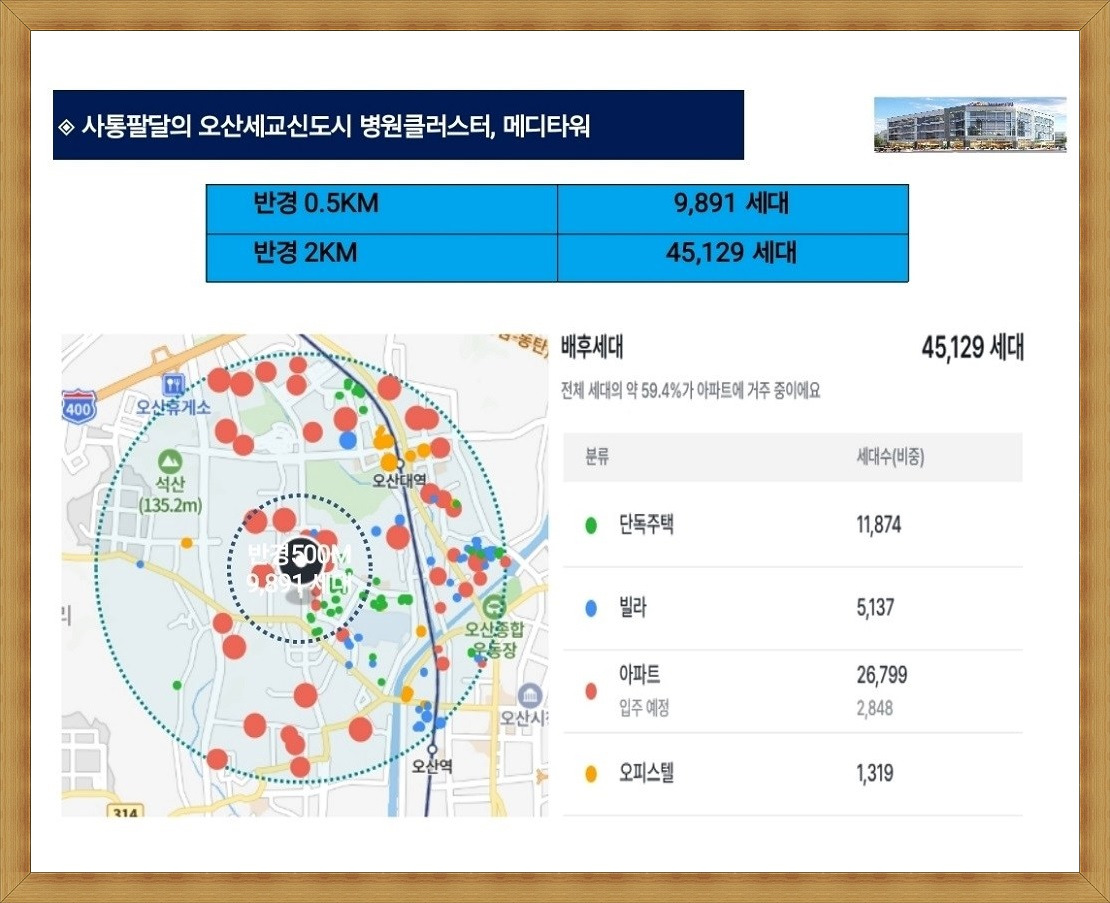 경기 남부 신흥부촌, 오산 세교2지구 최중심, 경기 남부 대표 신흥 주거지, 전 호실 대로변 노출 스트리트형 오산 세교 메디타워를 분양합니다.