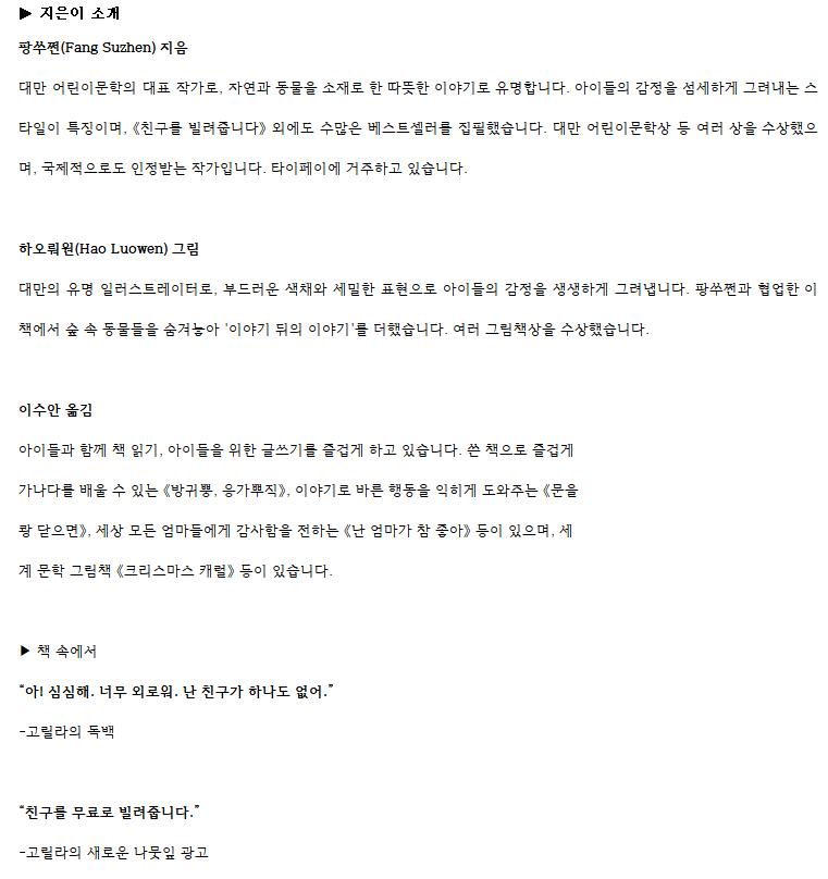 [신간안내] 내인생의그림책133 《친구를 빌려줍니다》