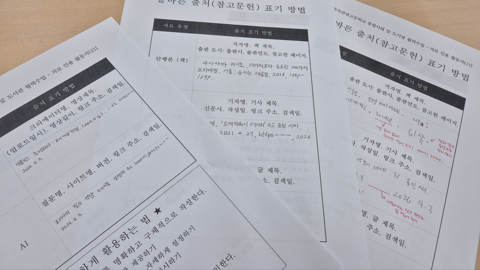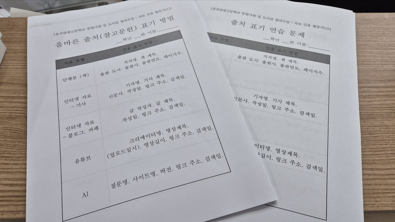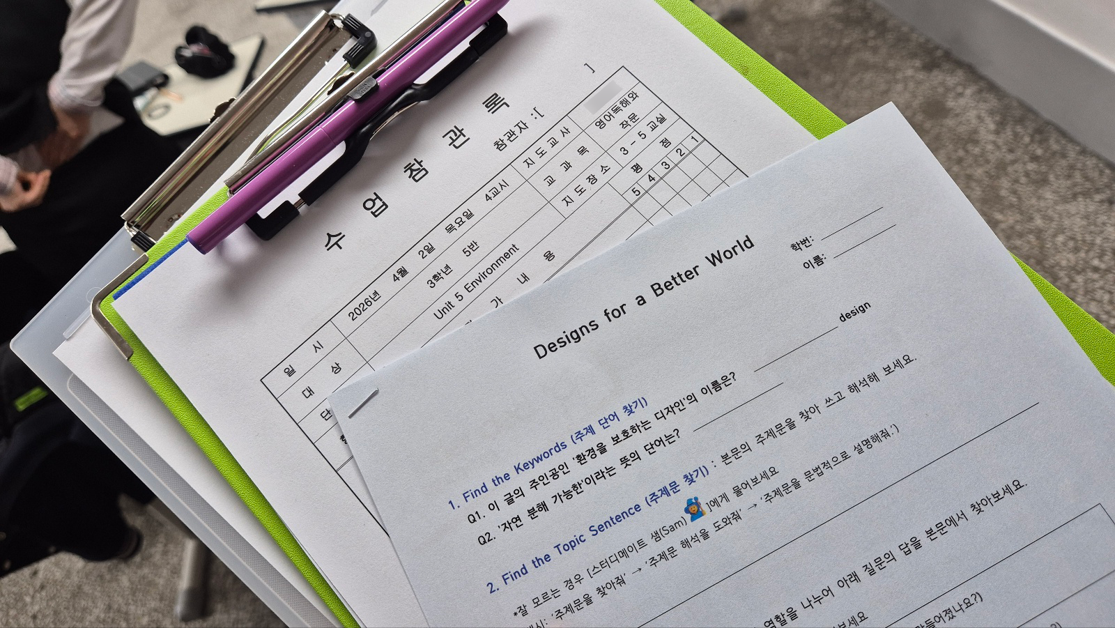 학습지를 통해 학생들이 열심히 수업에 참여했음을 알 수 있었다.