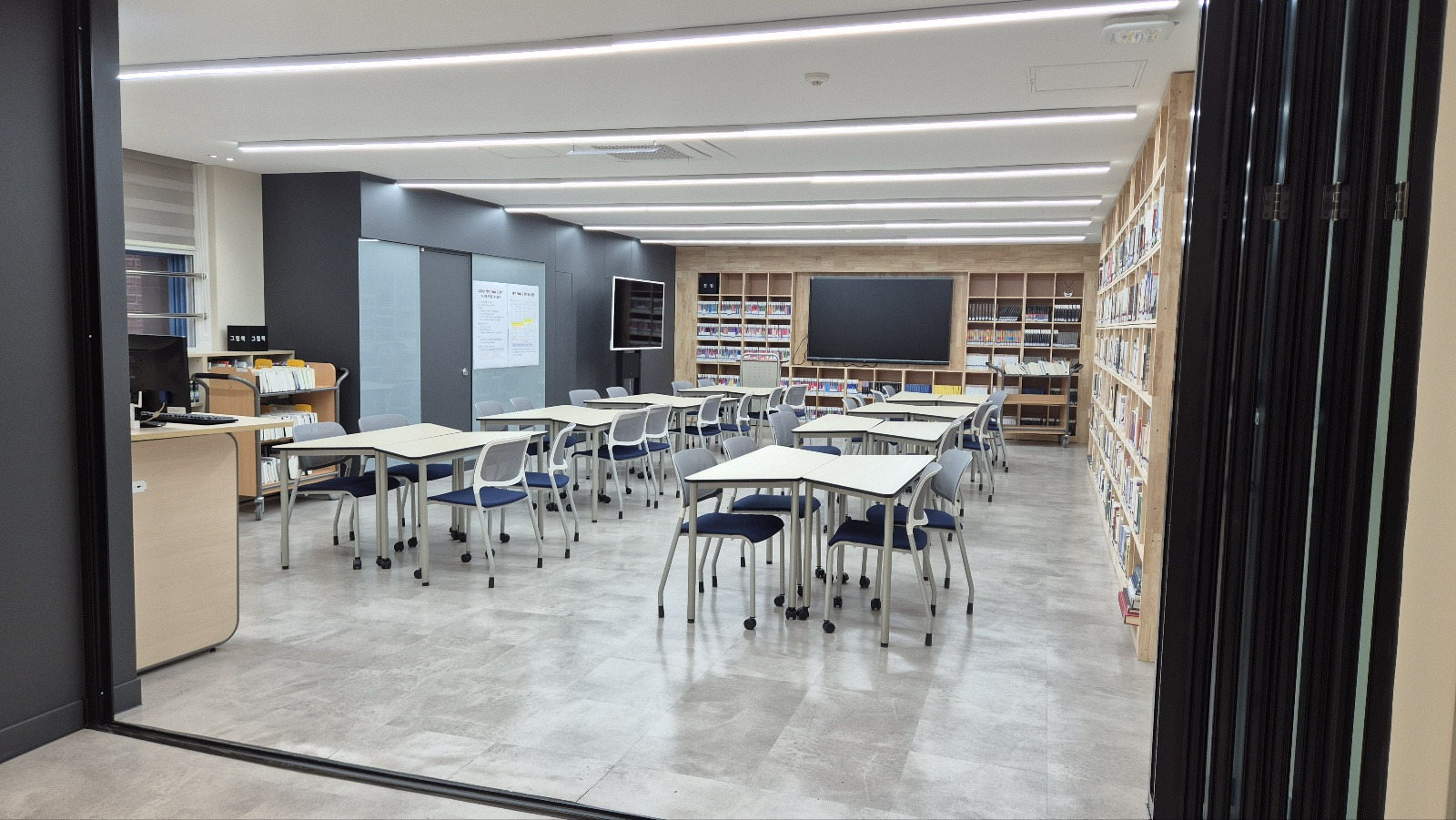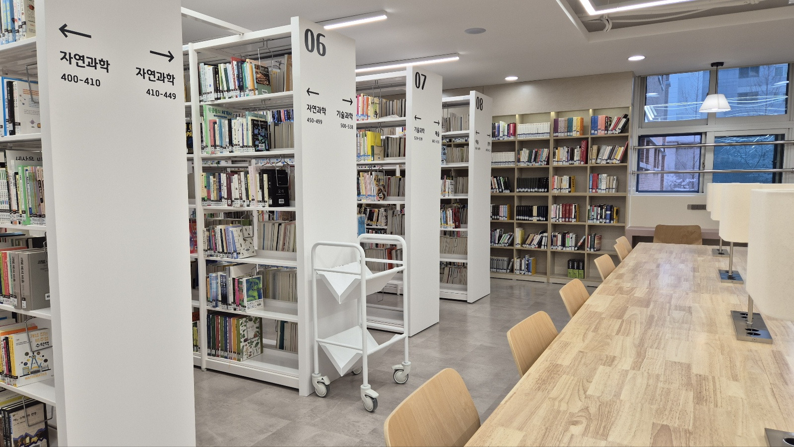도선고등학교 도서관은 이번에 새로 리모델링했다는 게 온몸으로 느껴질 만큼,