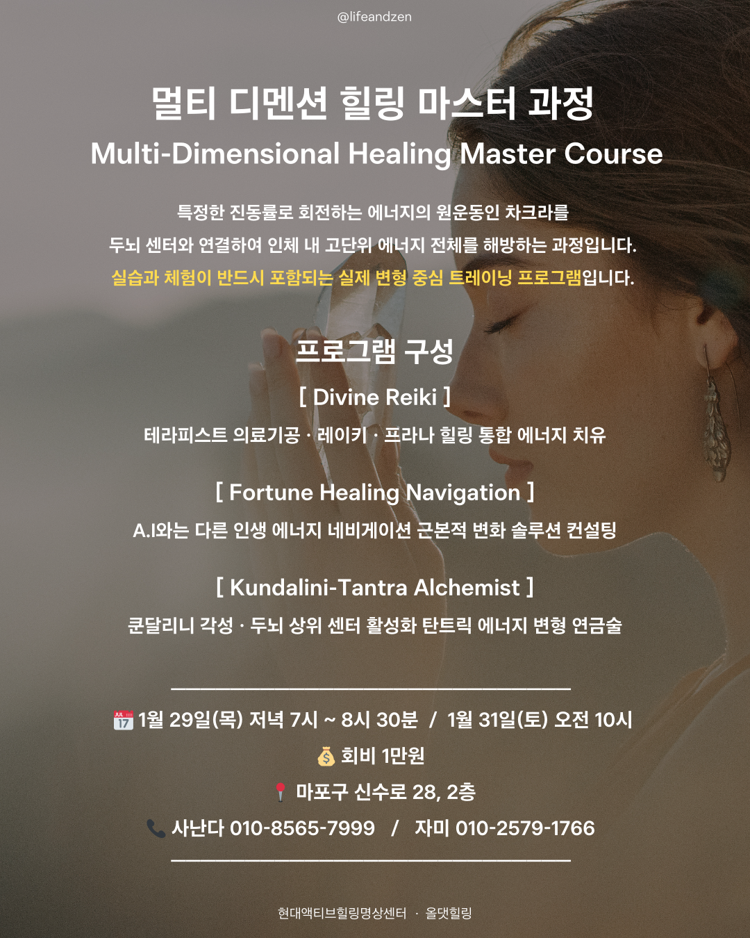 멀티 디멘션 힐링 마스터 과정 공개 강좌 안내