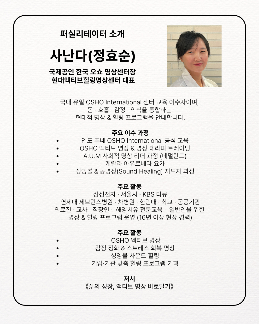#명상 #명상수업 #명상프로그램 #명상센터 #명상교육 #명상지도자과정 #명상자격증 #명상강사과정 #액티브명상 #오쇼명상 #오쇼액티브명상 #마음챙김명상 #힐링프로그램 #스트레스해소