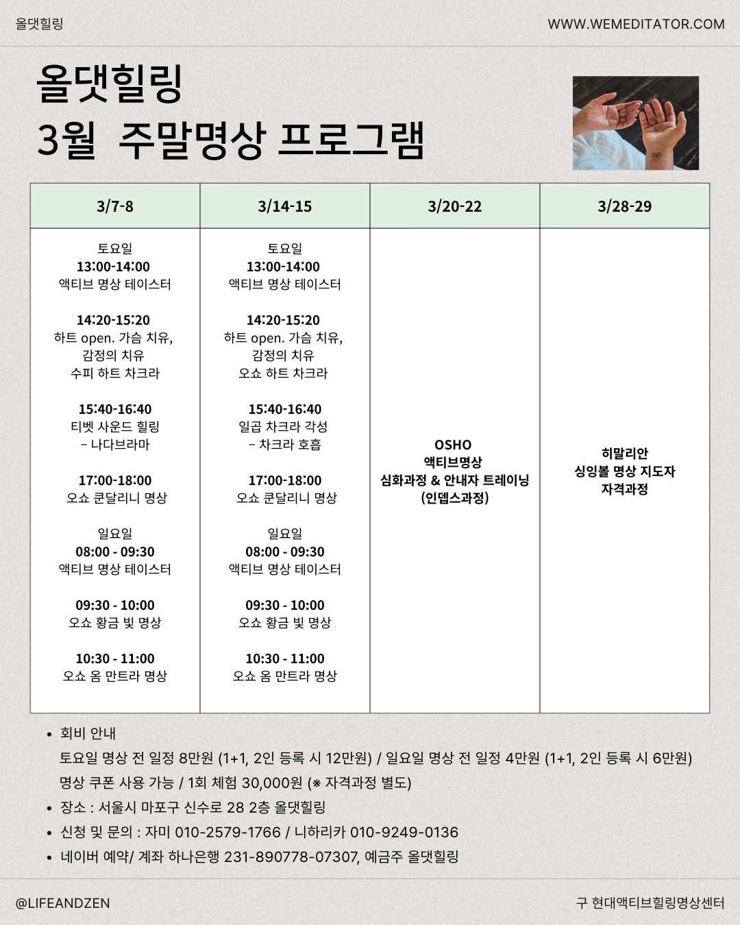 3월 명상 프로그램 안내 | 봄을 준비하는 올댓힐링 명상 클래스