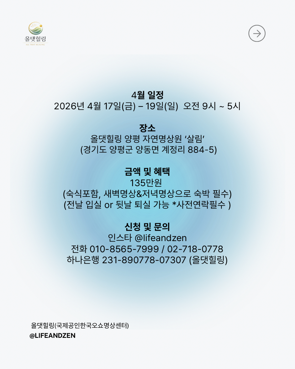 • 장소 : 올댓힐링 양평 자연명상원 살림