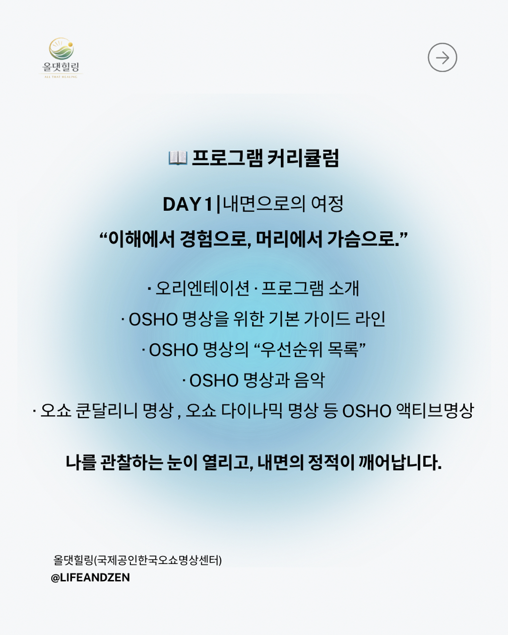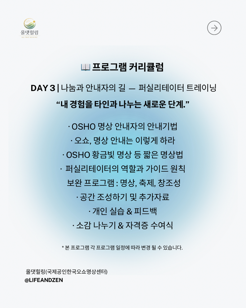 OSHO 액티브 명상 안내자 트레이닝이 함께 구성된 프로그램입니다.