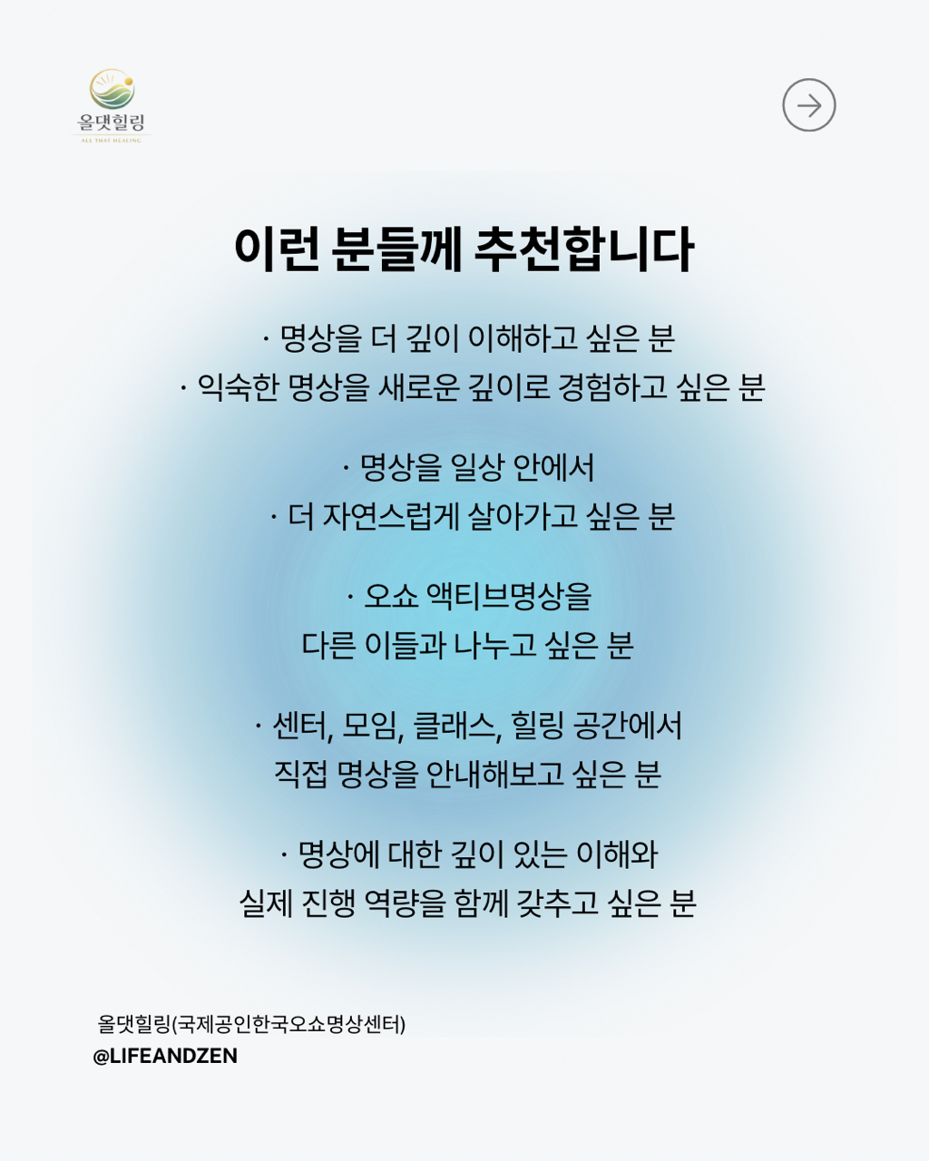 • 센터, 모임, 클래스, 힐링 공간에서 직접 명상을 안내해보고 싶은 분