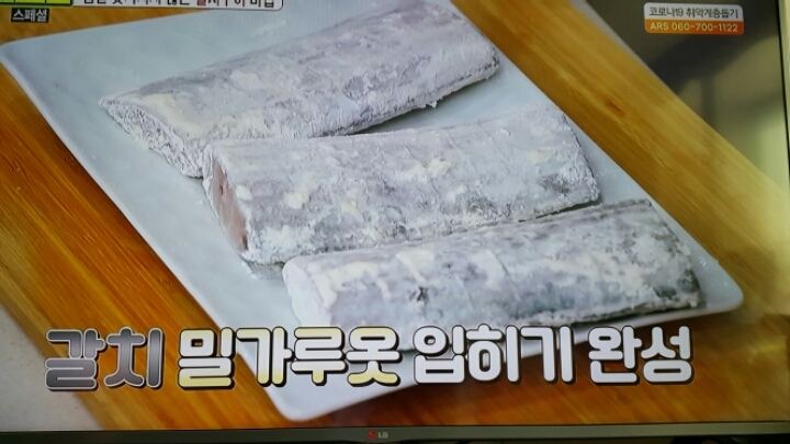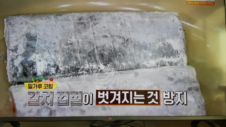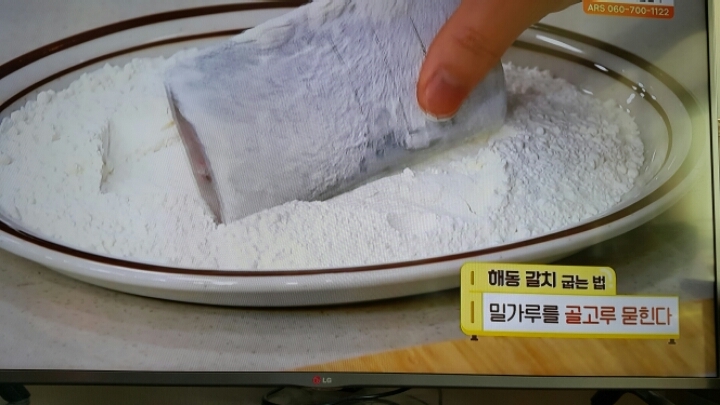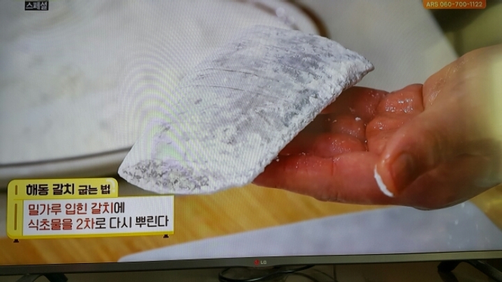 3. 갈치는 식초물 만들어 밀가루입히고 굽는다.