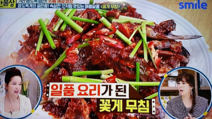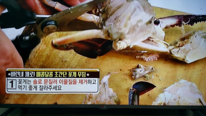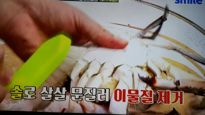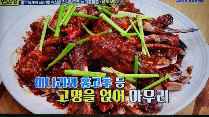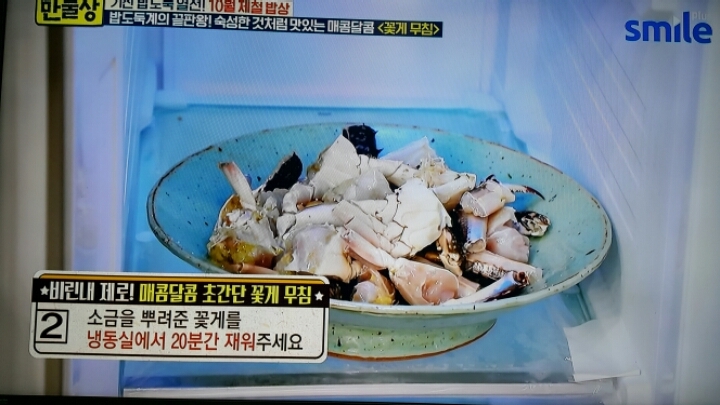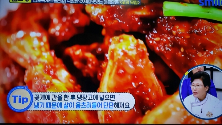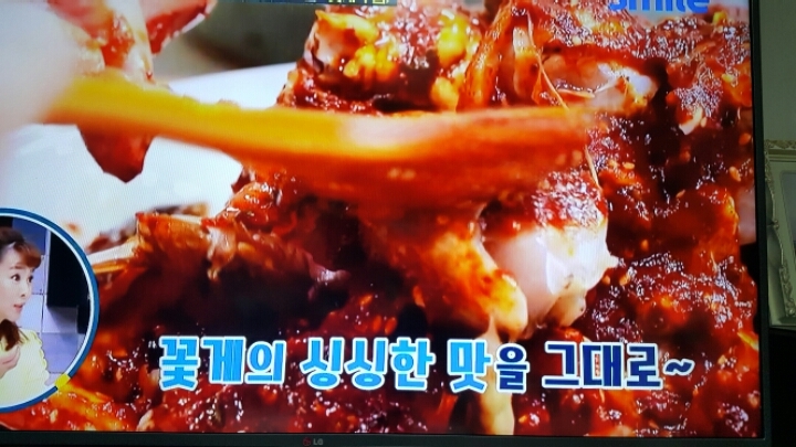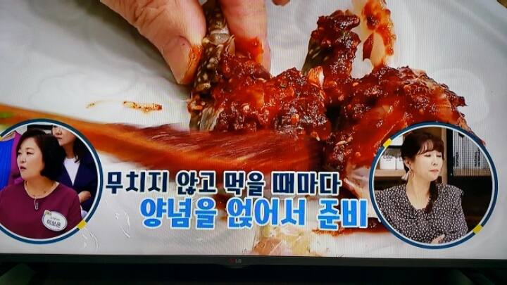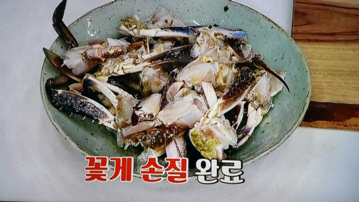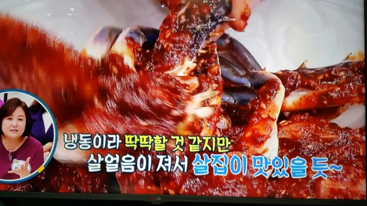 제주도 맛집의 꽃게무침 그대로 밑간.얼리기.그리고 청양고추 다져넣은 양념장을 발라서 먹는 꽃게무침