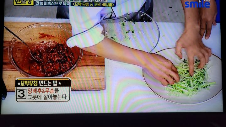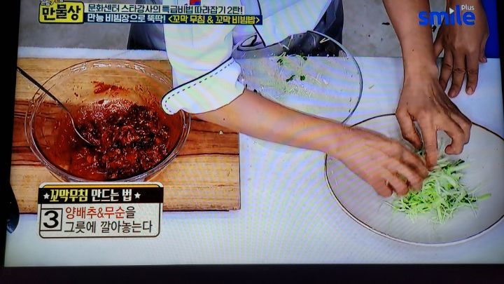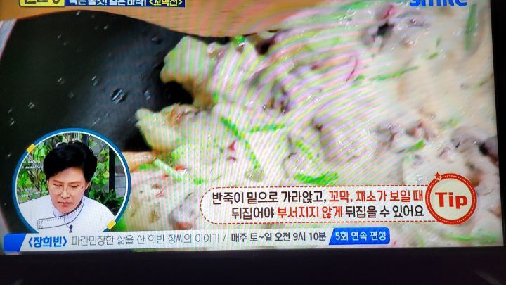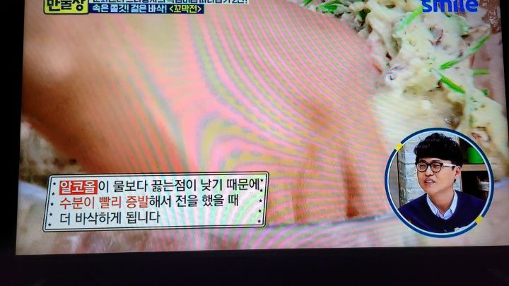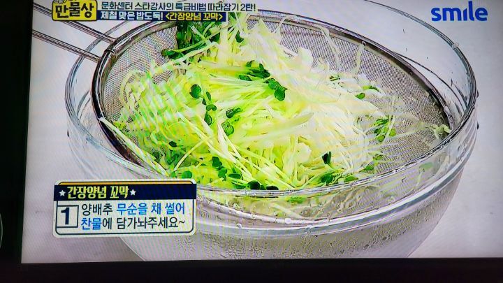 방향으로 만 저어준다. 4~5개정도가 입을 벌리면 불을 끄고 채에 받쳐 건진다음 숟가락을 이용해서
