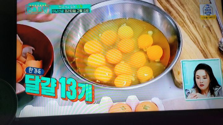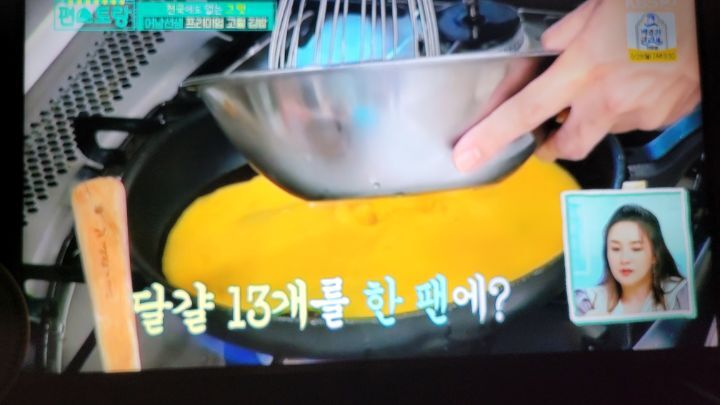 3. 계란은 13개 섞어 팬에 뚜껑닫고 약불에 익힌다.