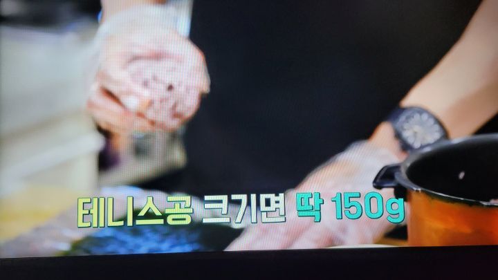 김 한장에 밥은 150g 테니스공 크기를 넣는다.
