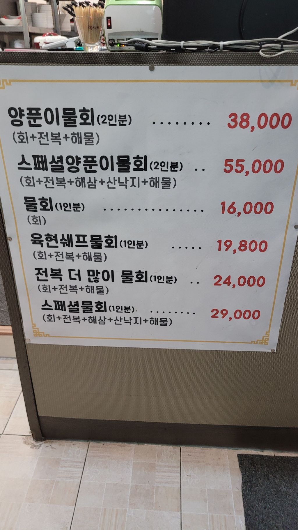9가지 해산물은 광어회, 전복, 멍게, 해삼, 낙지