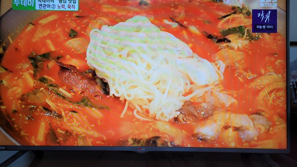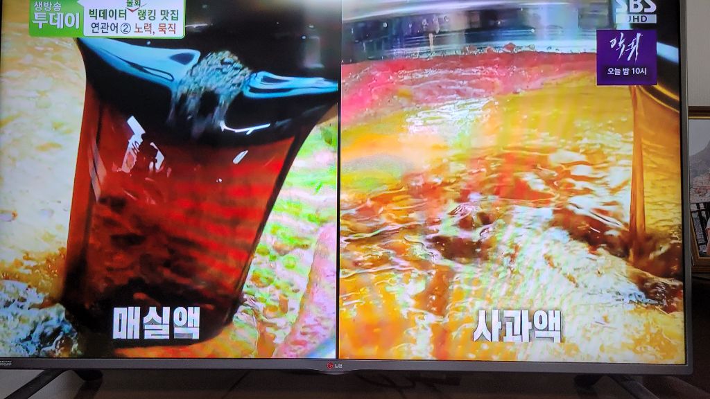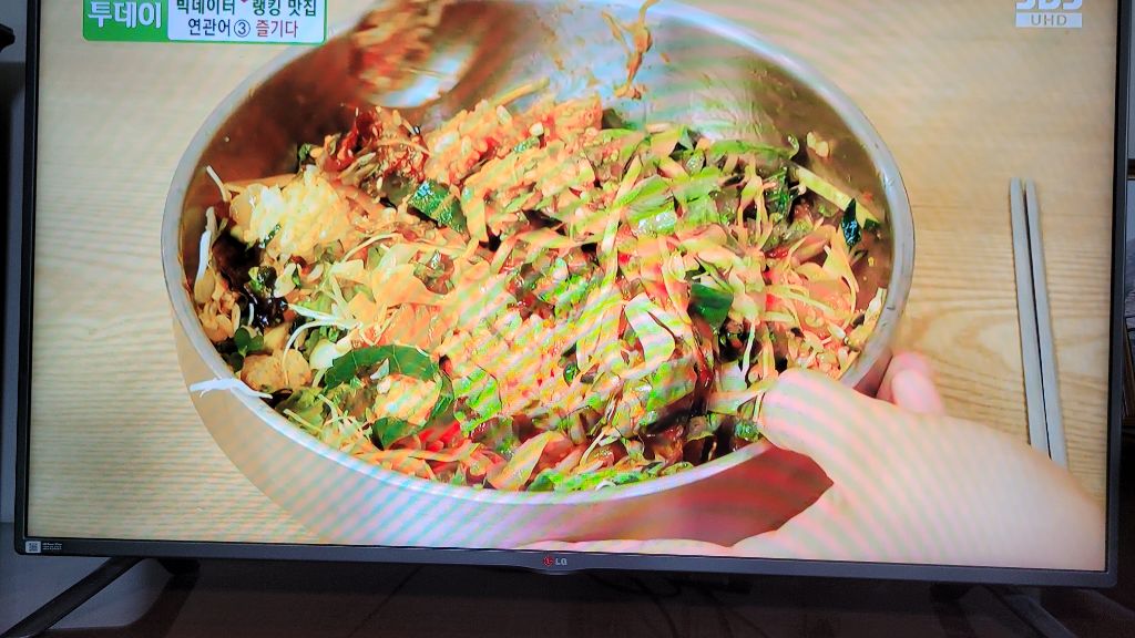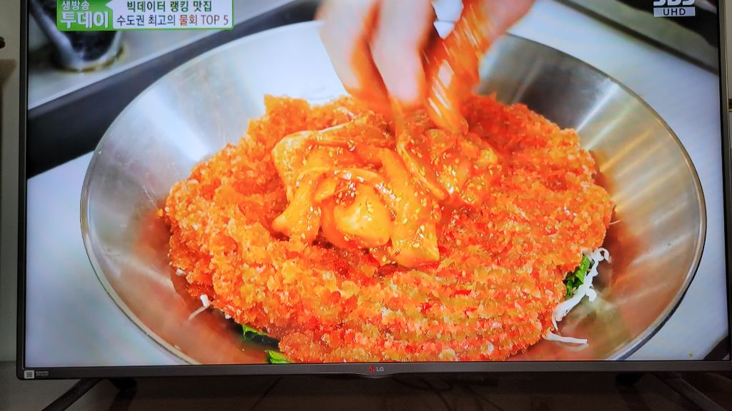 밑국물은 냉면육수, 메밀육수로 파인애플 쪼개 갈아넣고 비트도 갈아넣고 매실청, 고추장, 설탕과 (참기름)넣고 식초는 넣지 않는다.