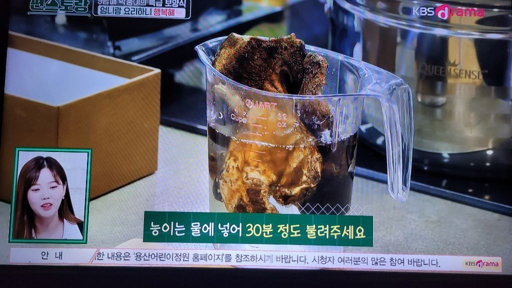 2. 물1리터에 능이버섯 2-3개넣고 불린다.