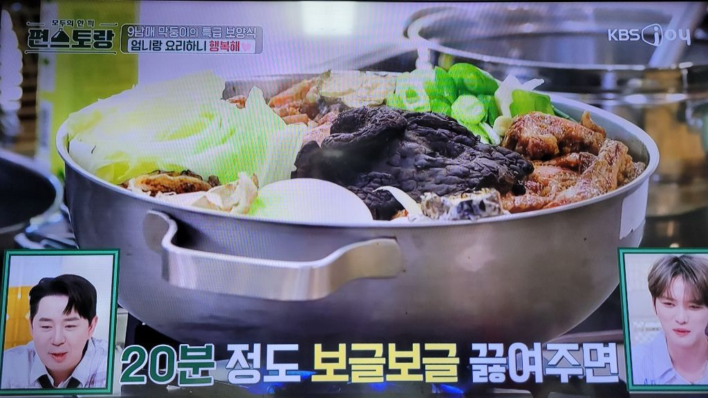 육수에 붓고 합쳐 중불로 20분간 끓인다.