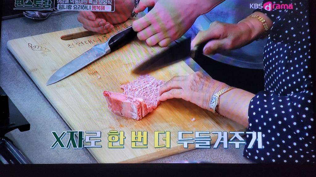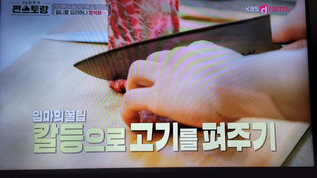갈비는 갈라서 칼등으로 펴서 길게 저민다.