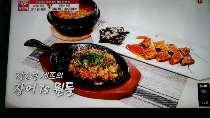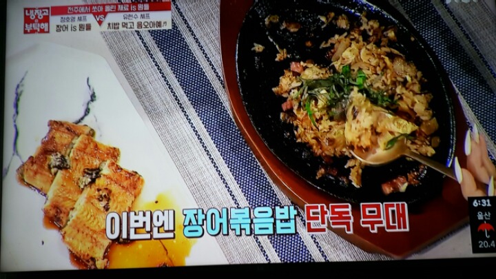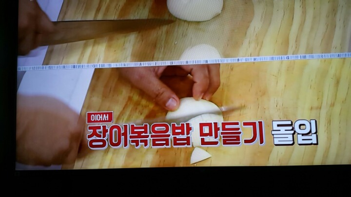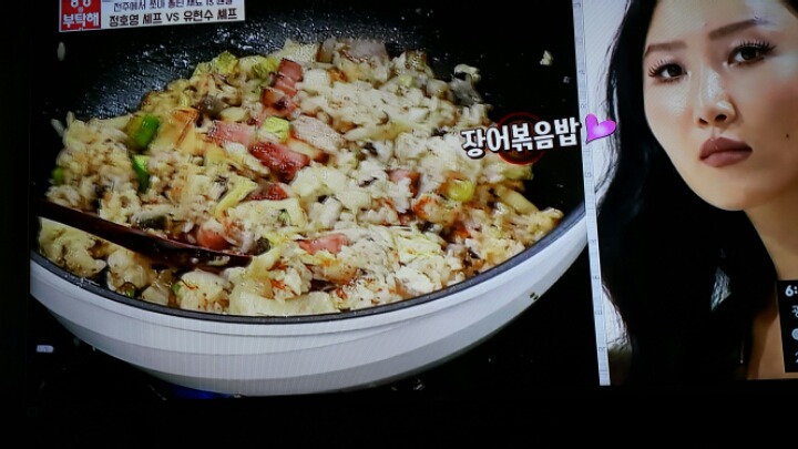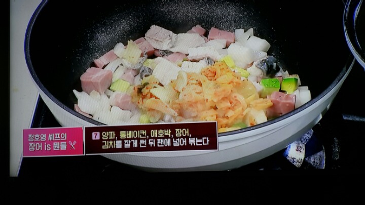 양파,통베이컨,애호박,장어,김치를 잘게 썰어넣고 볶는다.