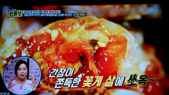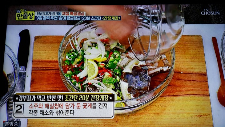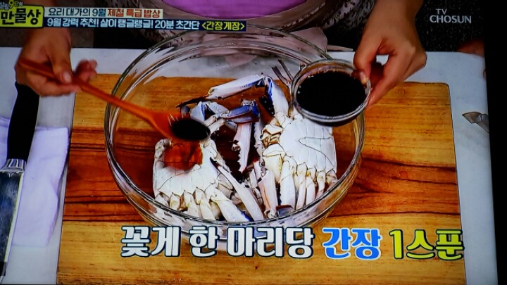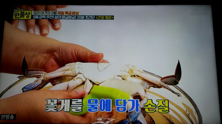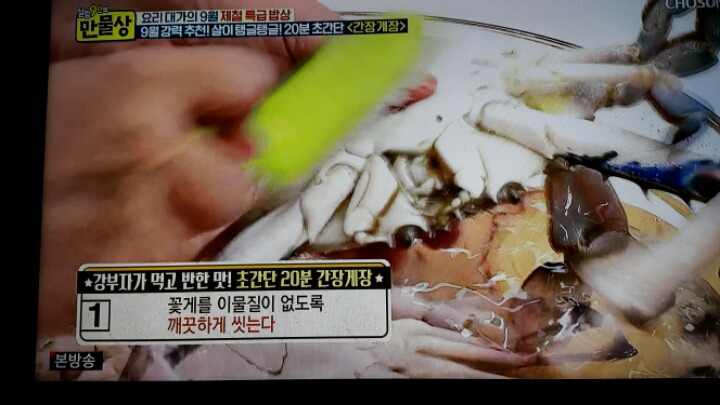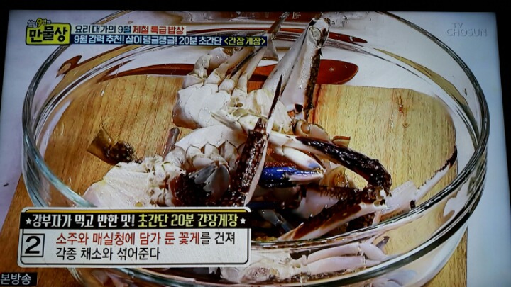 냉동실에서 10분간 얼린 꽃게는 간장양념이 꽃게 속으로 배어든다.
