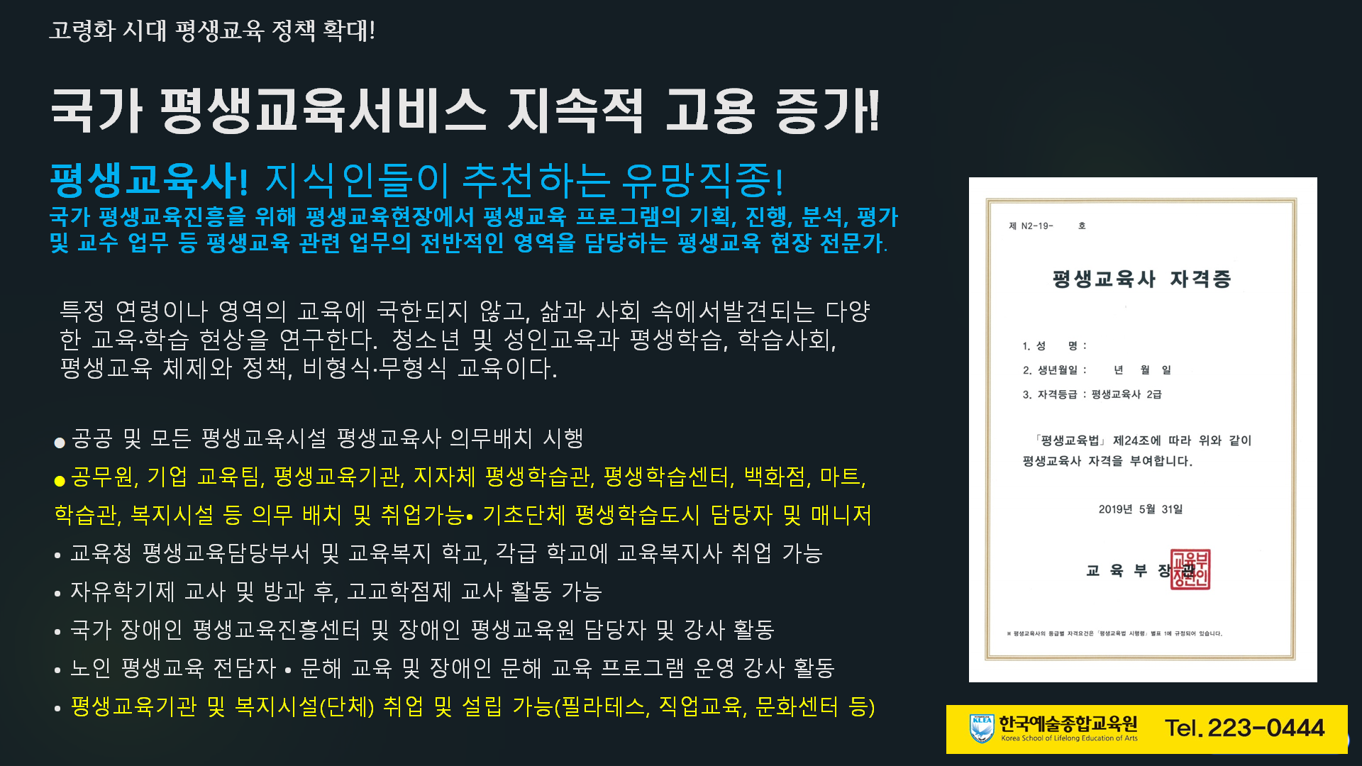 - 수업 시간: 사회복지사> 목 오전반 10시~/저녁반 18시30~ 평생교육사> 저녁반 18시30~