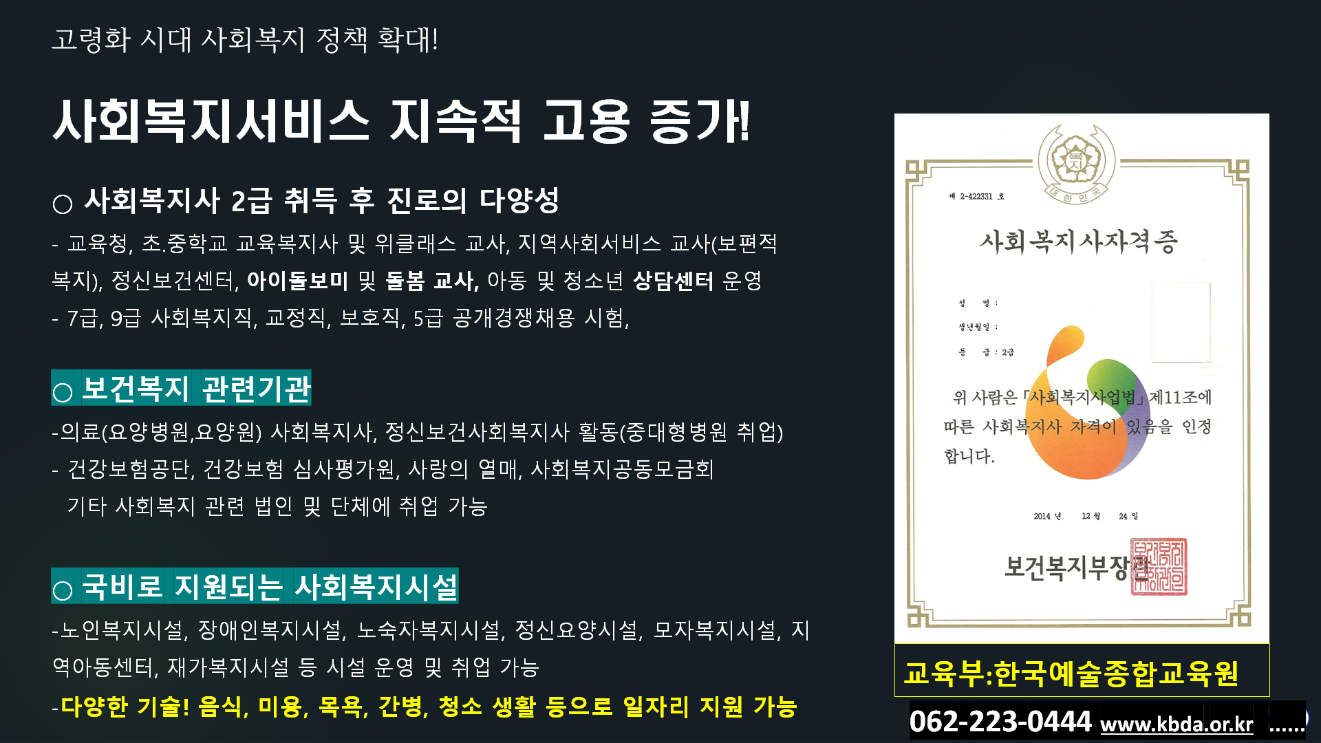 - 방문 상담 및 문의 가능(검색 '한국예술종합교육원')