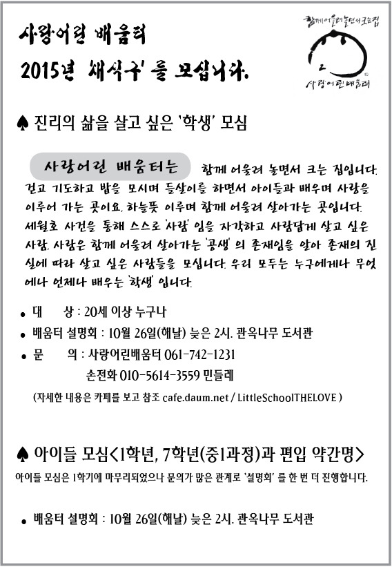 [스크랩] 사랑어린학교 새식구 모심 작성자두더지김민해|작성시간14.10.11|조회수51 목록 댓글 0 글자크기 작게가 글자크기 크게가 다음검색 스크랩 원문 : 사랑어린학교 현재 게시글 추가 기능 열기 북마크 공유하기 신고 센터로 신고 댓글 댓글 0 댓글쓰기 답글쓰기 댓글 리스트