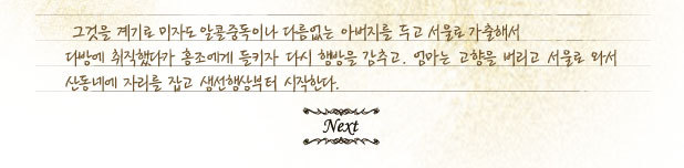 일취월장하고, 어머니도 생선 행상에서 함바집으로 거기서 설랑탕 집으로 발전하고 태수 역시 술대리점에서