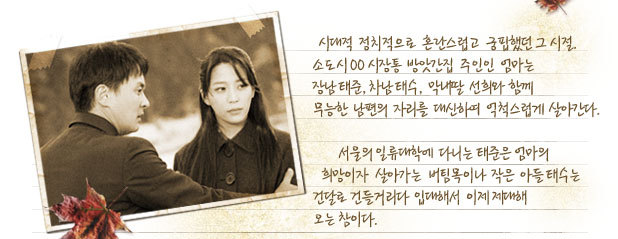함께 무능한 남편의 자리를 대신하여 억척스럽게 살아간다. 서울의 일류대학에 다니는 태준은 엄마의 희망이자