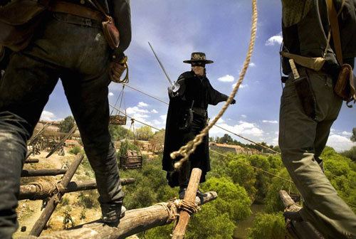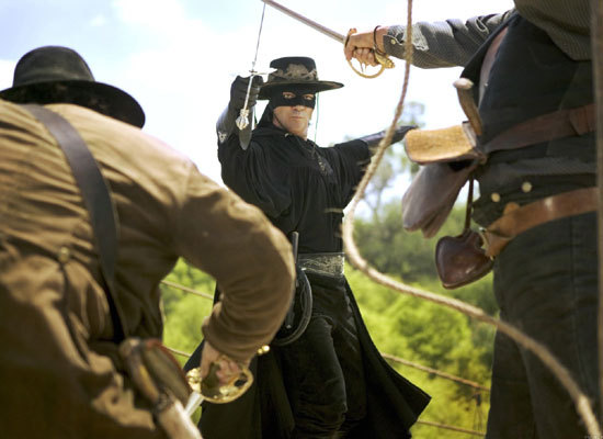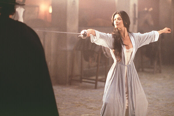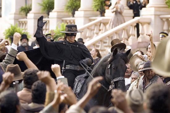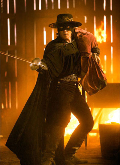 감독은 <압솔롬 탈출>과 <007 제17편 - 골든 아이>의 마틴 캠벨이며, 스페인 출신의 안토니오 반데라스와 안소니 홉킨스가 주연하였다. 여주인공으로 출연하는 캐서린 제타 존스는 TV 미니시리즈 <타이타닉>에서 스필버그의 눈에 들어 발탁된 신예다. 이 작품에선 헐리우드에서 45년간 검술 지도를 했던 검술가 밥 앤더슨이 검술 조언을 맡았는데, 그가 솜씨를 보인 검투 액션씬이 주요 볼거리다.