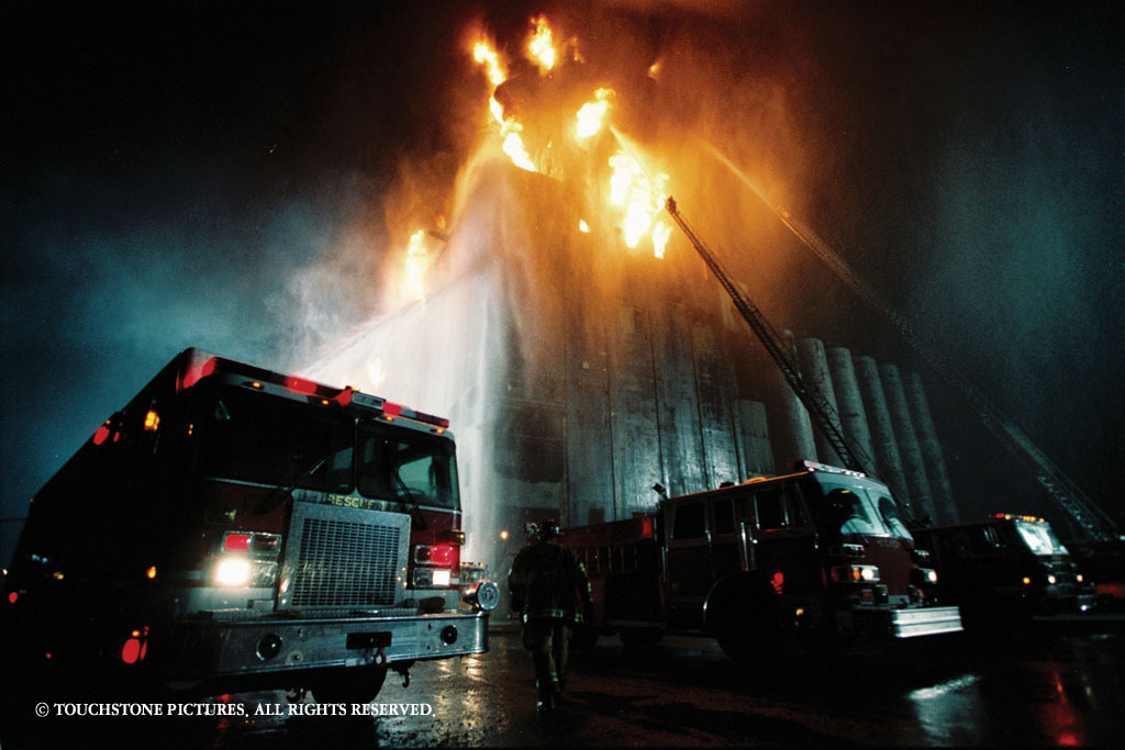 영화의 중심 무대는 화재가 난 곡물 창고. 곡물 창고에서 불이 날 경우, 그 위험성은 훨씬 더하다. 곡물 먼지가 발화해, 폭발할 가능성이 있고, 이는 건물 구조의 붕괴로 이어질 수 있기 때문이다. 주인공 잭 모리슨은 화마에 휩싸인 주민을 구한 뒤, 자신은 무너진 건물 속에 갇혀버린다. 이 장면을 찍을때 전 촬영진은 CBA라는 호흡 보조기구를 착용했다. 자칫, 질식할 위험이 있었기 때문이다.