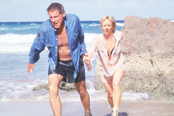 <아프리카의 여왕>(51)에서 <로맨싱 스톤>(84)을 거쳐 <호스 위스퍼러>(98)까지, 야성적인 사내의 거만한 도시 여자 길들이기를 소재로 했다. 무대는 문명을 떠나온 대자연. 여자는 으레 세련된 전문직 여성이고, 남자는 심상찮은 내력을 지닌다. 단선적인 스토리에 별다른 반전도 없고, ‘로맨스 어드벤처’를 표방하지만 모험 강도는 미지근하며 적대에서 연모로 바뀌는 두 사람 사이 감정 변화가 세심하게 표현하지 못했다는 평이다. 그렇다면 결국 재미는 두 주연 배우에게 달렸다. 해리슨 포드는 건달처럼 끈적하게 웃고, 술에 취해 추근대며 헛점 많은 홀아비를 연기한다. 앤 헤시의 묘한 중성적 매력은 이 영화에서 가장 큰 볼거리다. 톡톡 튀는 대사를 순발력있게 처리하고, 장면마다 표정 연기가 빼어나다. 그녀는 97년 TV 스타와 레즈비언 관계라고 당당하게 공표해 화제를 모았다.