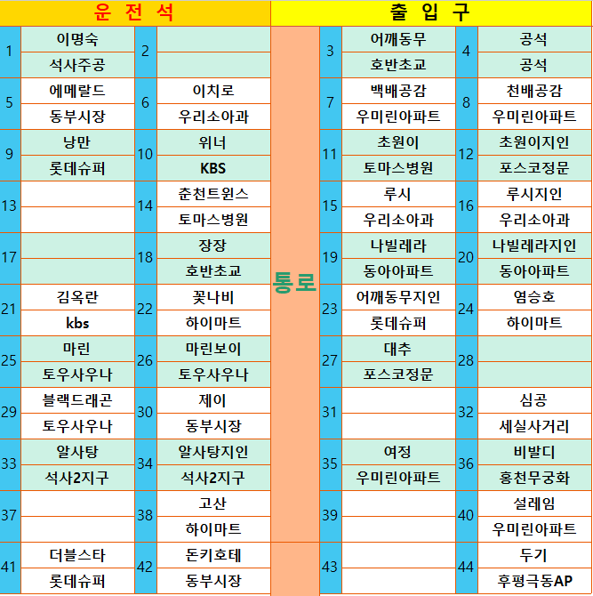 지정하지 않을시 임의로 좌석을 지정함을 알려 드립니다. 처음 산행하시는 분은 회장,총무에게