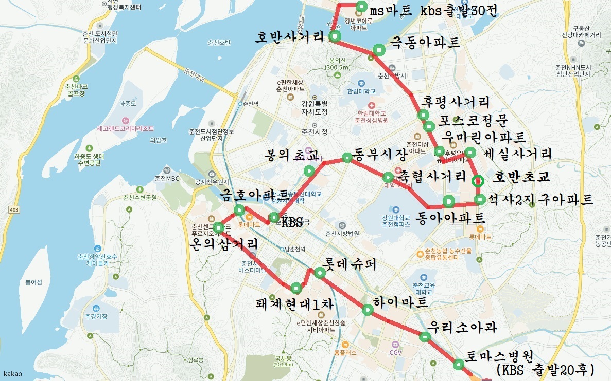 동부시장농협 - 봉의초등학교 - kbs만남의숲