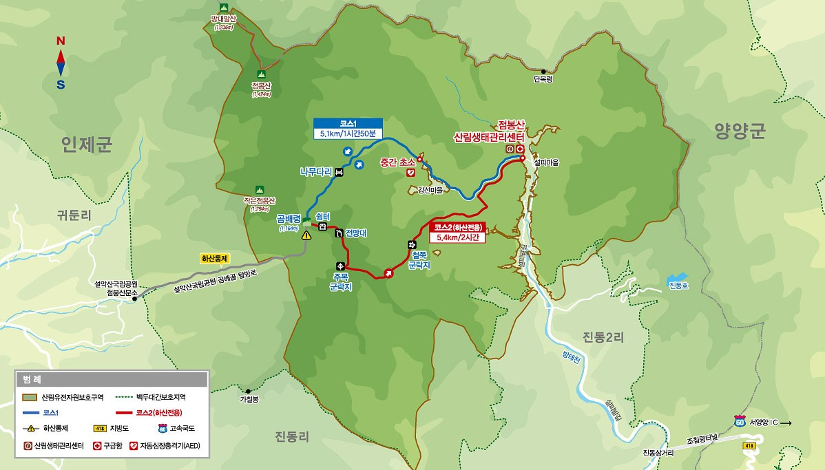 산행코스점봉산 생태관리센타>곰배령>점봉산 생태관리센타