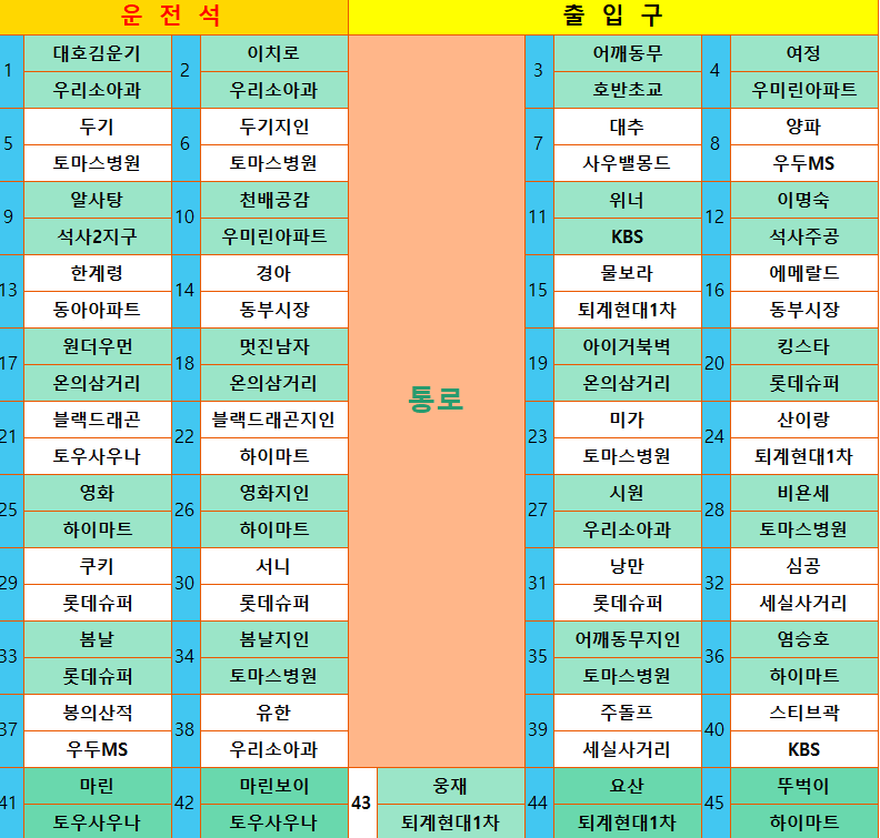 ◈버스 좌석도◈