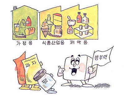 그리고 부패방지라고 하면 방부제나 소금을 생각하겠지만 설탕에도 강한 방부력이 있다. 설탕은 수분을 빨아들이고 놓지 않는 특성 때문에 수분이 탈취된 미생물세포는 활동할 수가 없으므로 설탕을 듬뿍 넣은 과자나 쨈등은 쉽게 썩지 않는다. 또한 진한 설탕용액에는 산소가 잘 녹지 않아서 지방의 산화를 방지하는데, 설탕이 적으면 방부효과가 없으므로 방부의 목적으로 설탕을 넣을 때에는 적어도 전 중량의 반이상을 사용하여야 한다. 설탕은 이와같이 설탕이 지닌 여러가지 특성으로 인하여 식품산업에는 물론 제약과 공업용, 화학제품용으로도 널리 사용되고 있다. | ||||||||||||||||||||||||||||||||||