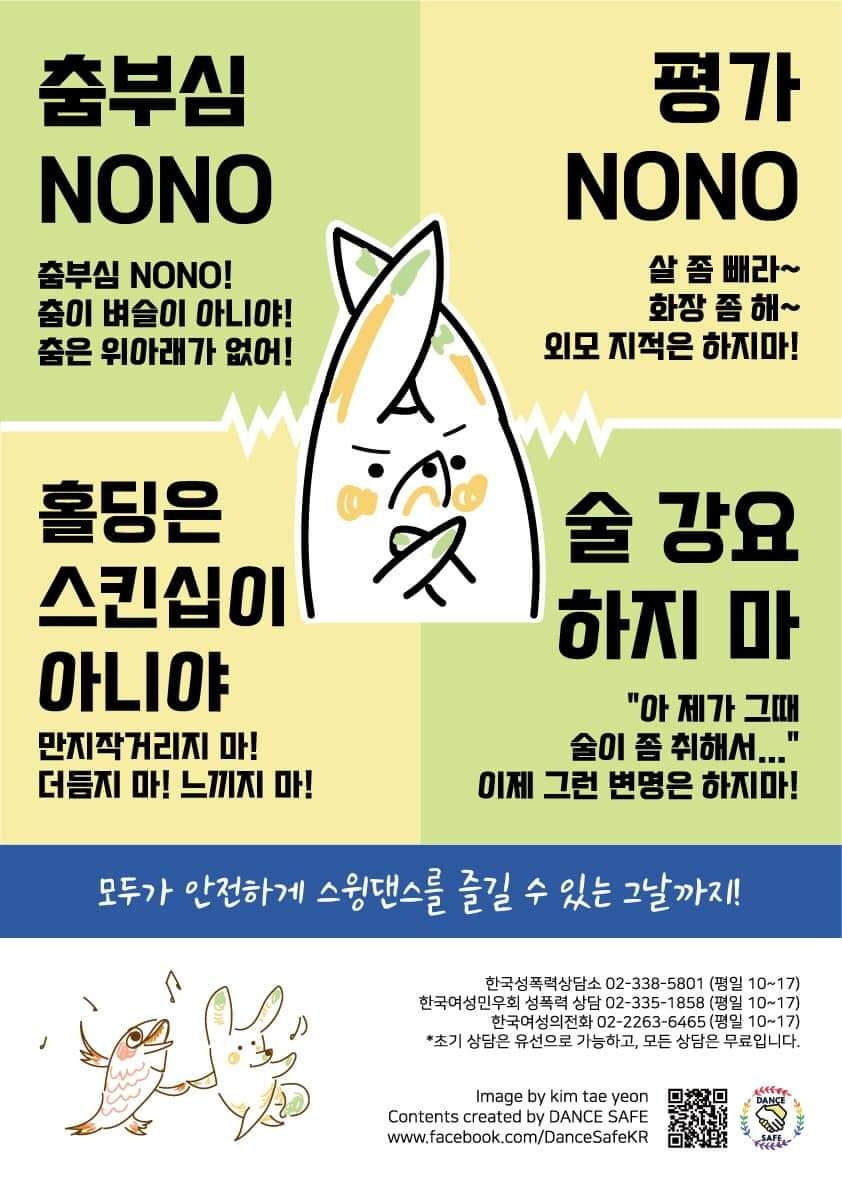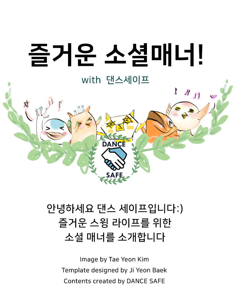 '댄스세이프'는 2017년 안전하게 춤을 추고 스윙생활을 하기 위해 만든 모임 겸 캠페인입니다.