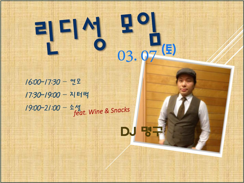 * 19:00~21:00 / 소셜 (DJ 명구) / 8,000원