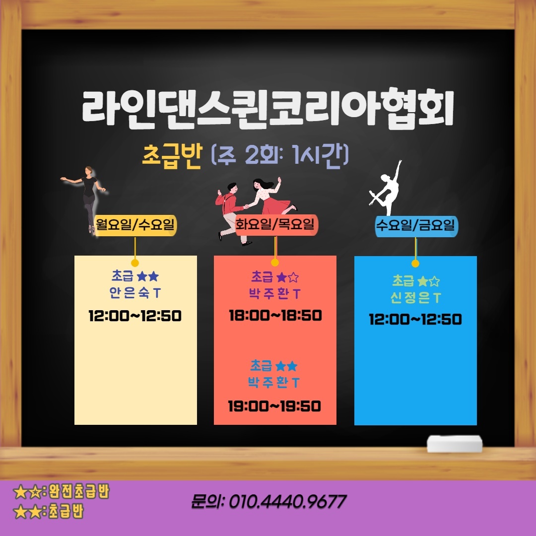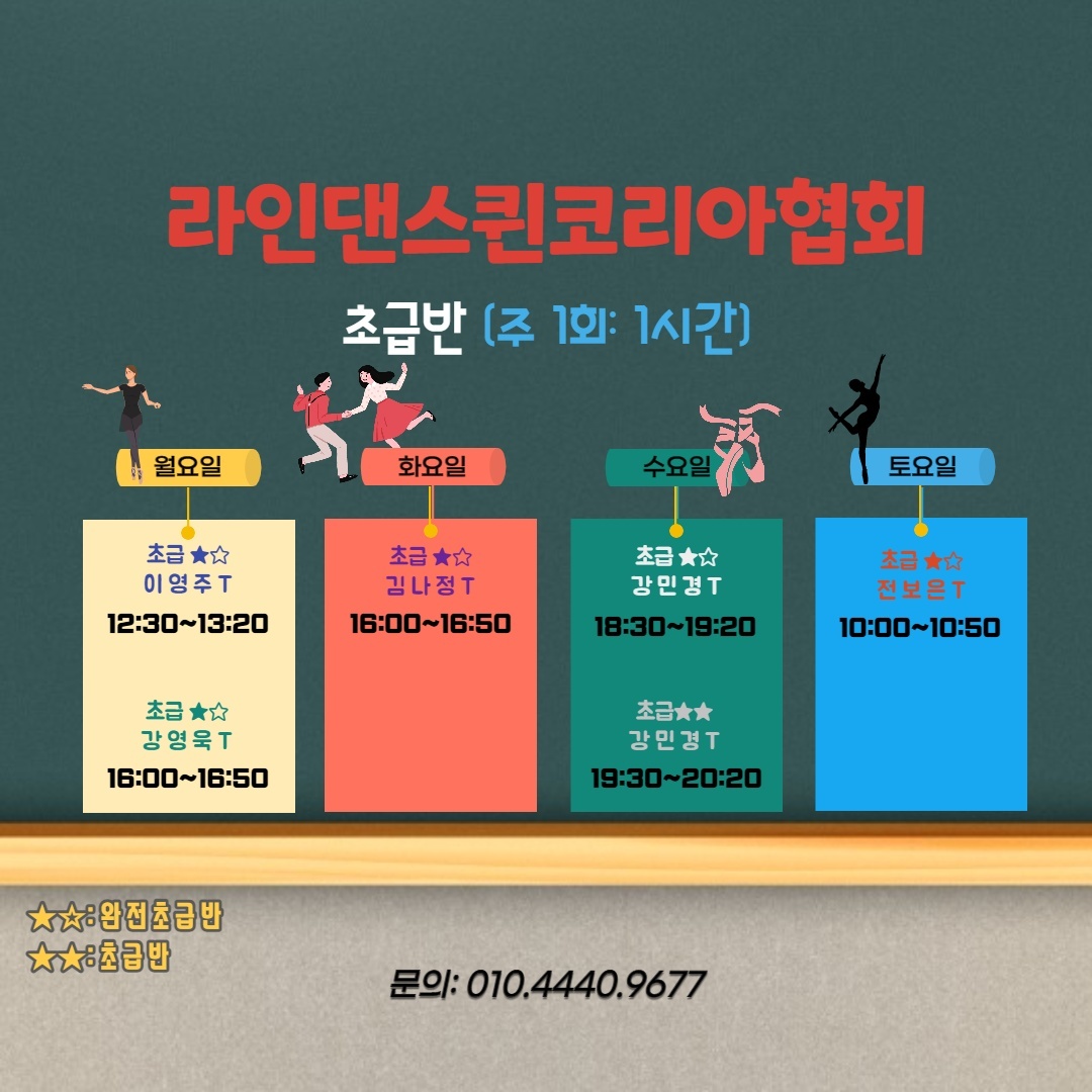 2022년도 라인댄스퀸코리아협회 초급반 수업안내 작성자퀸코리아협회|작성시간21.12.30|조회수764 목록 댓글 1 글자크기 작게가 글자크기 크게가 다음검색 현재 게시글 추가 기능 열기 북마크 공유하기 신고 센터로 신고 댓글 댓글 1 댓글쓰기 답글쓰기 댓글 리스트 작성자초록비 | 작성시간 23.05.04 안녕하세요.라인댄스에 관심이 있었어 카페에 가입하게 되었습니다. 댓글 전체보기