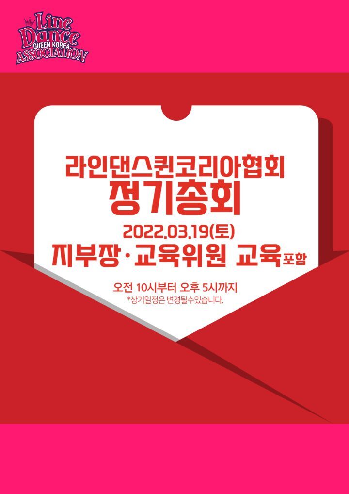(사)라인댄스퀸코리아협회 상반기 일정 안내 작성자퀸코리아협회|작성시간22.01.13|조회수623 목록 댓글 0 글자크기 작게가 글자크기 크게가 다음검색 현재 게시글 추가 기능 열기 북마크 공유하기 신고 센터로 신고 댓글 댓글 0 댓글쓰기 답글쓰기 댓글 리스트