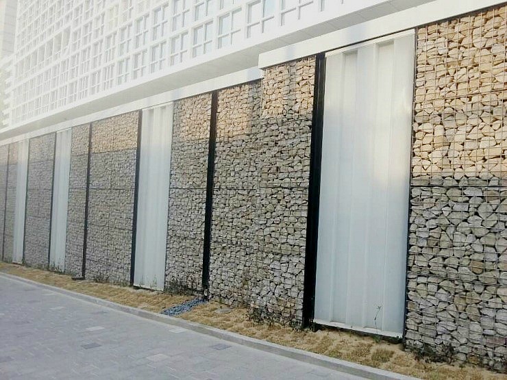 Uglass 설계를 진행하는 과정에서 특이한 사항은 저층부 직선구간의 GABION 게비온((GABION - 특수아연도금 철선 또는 철선