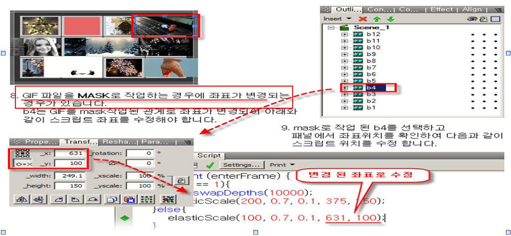9. Scene_1과 Button및 Movie Clip(bs1~bs12)d에 Scripting하기