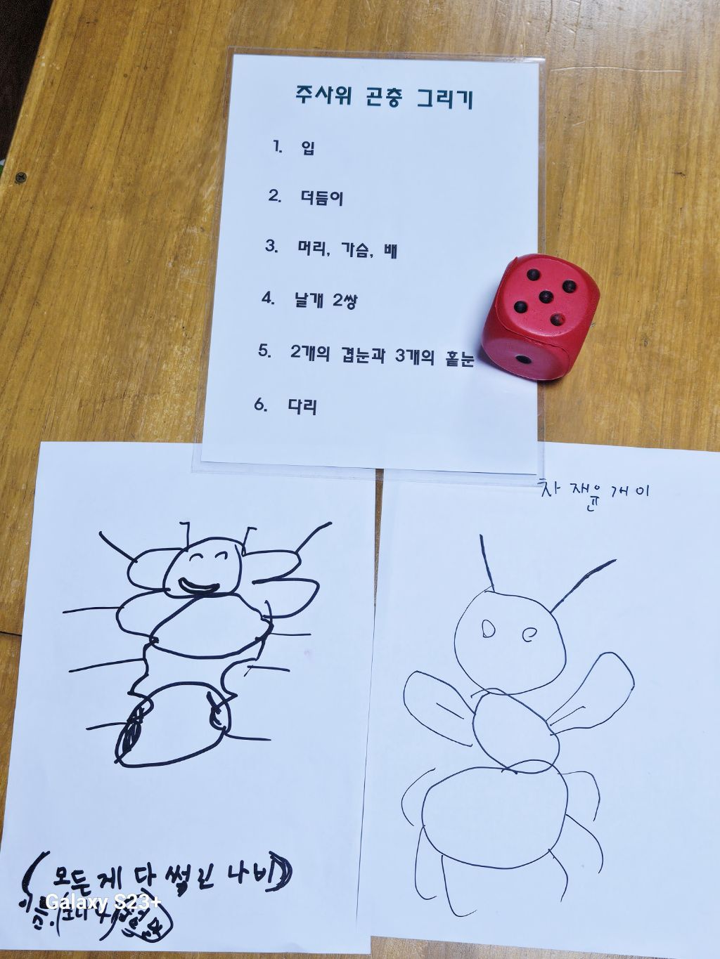 그림을 마무리 짓고 오늘 배운 곤충의 특징을 이용해서 주사위를 던져 곤충그리기 놀이를 해보았어요.