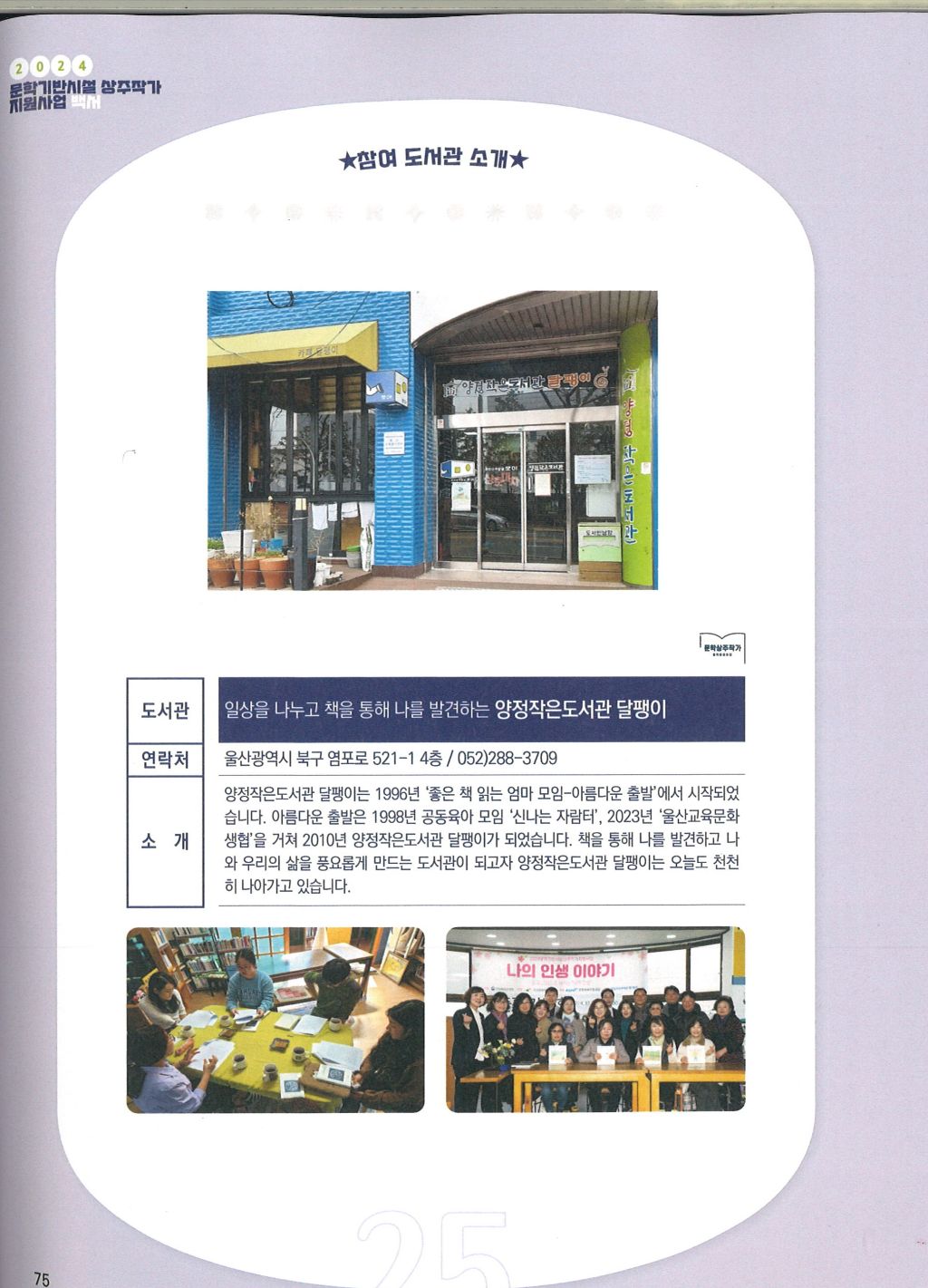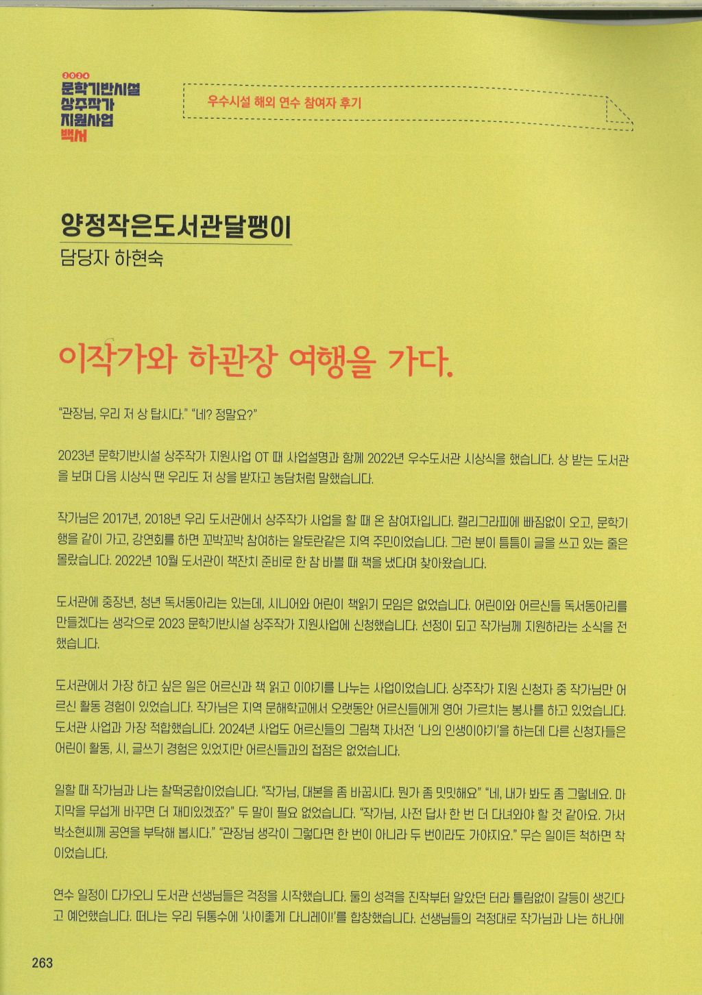 #2024문학기반시설상주작가지원사업 #상주작가백서 #양정작은도서관달팽이 #도서관작가 #상주작가지원사업