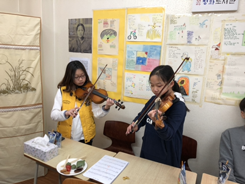 놀이마당답게 평화할머니로 나와 웃음을 준 조은이는 리코도 연주로 듣는 또 마음을 사로잡았다. 초등학교 6학년 오시영과 박세진이 바이올린 솜씨를 뽐냈다. 이어 중학교 1학년 우지민은 오카리나를 이승원은 리코더 연주를 해서 분위기를 띄웠다.